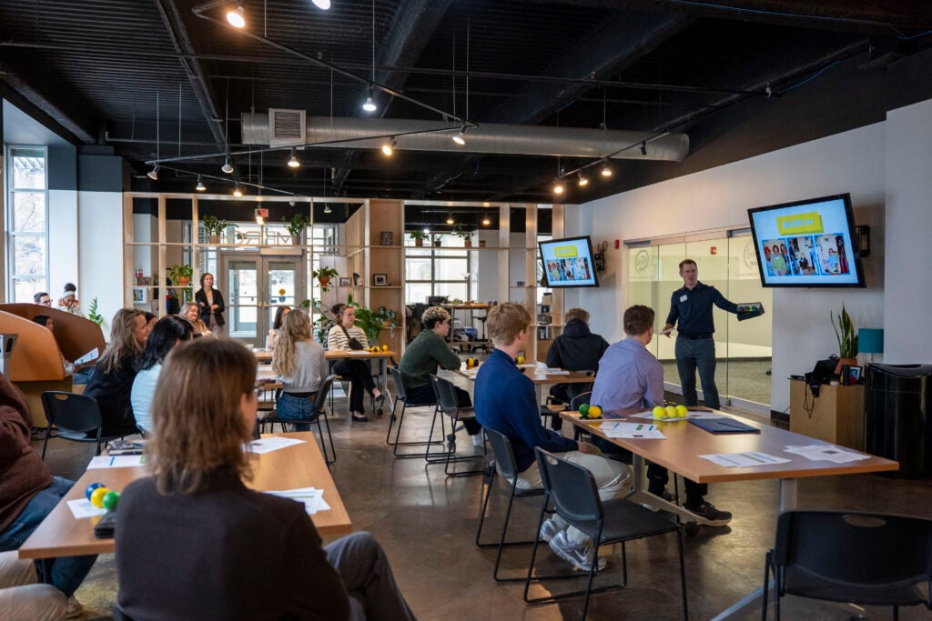 Students and local entrepreneurs then had the opportunity to ask questions about Tom’s experience starting a business, his aspirations for what comes next, and to brainstorm ideas about how to take his venture even further. In response to a student’s question, Tom said:
